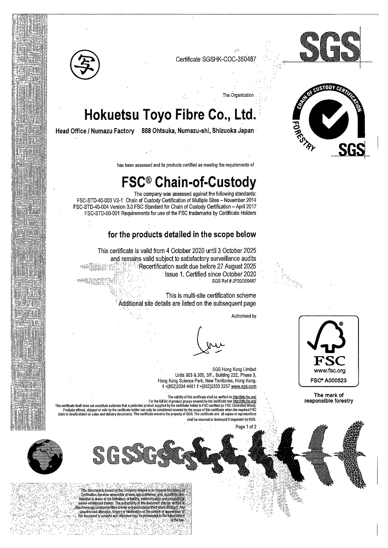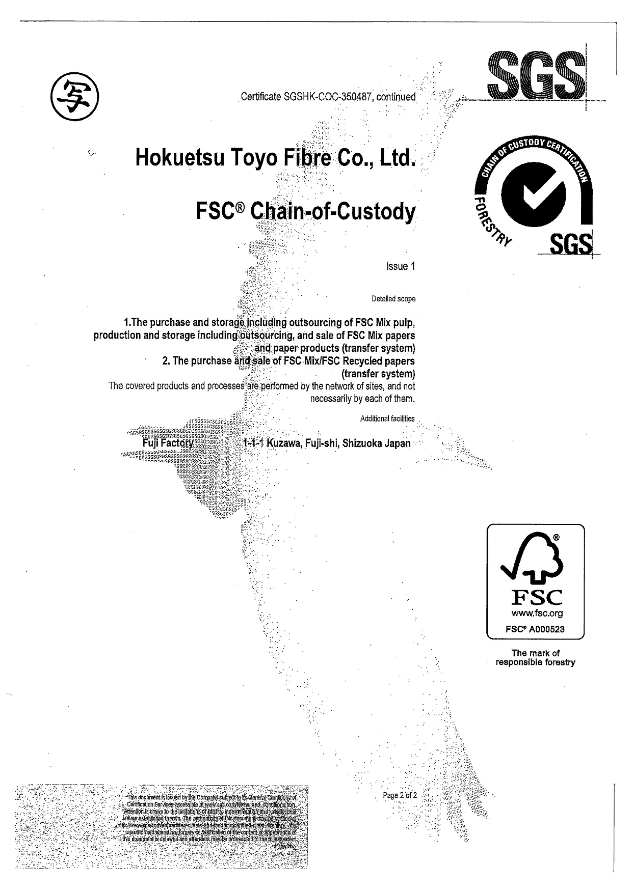 当社バルカナイズドファイバー製品「HB-77シリーズ」で FSC認証を取得いたしました。